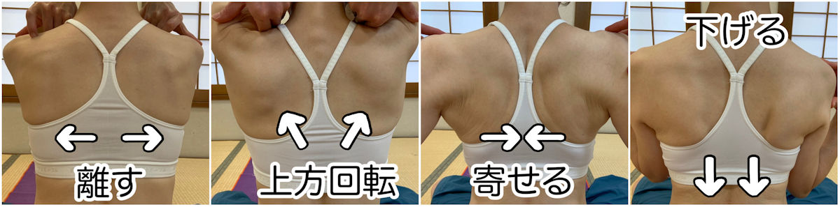 肩甲骨を気持ちよく動かしていきましょう。写真を見ながらやってみてください。