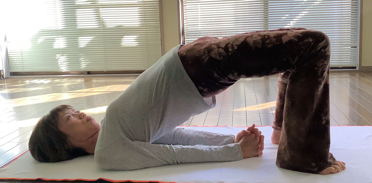 そして横になって脚をほぐしてから橋のポーズ。ここで横になっても意識してきた丹田に力を込めることが自然にできてきます……ハズです(^_^;)ゝ